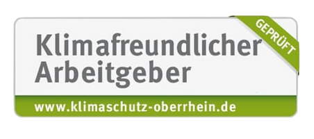The association Klimapartner Oberrhein e.V. awarded us the title "Climate-Friendly Employer" because we handle resources with particular care and, for example, make our business trips by bus and train whenever possible. Our social responsibility as a company and employer is also reflected in the award.